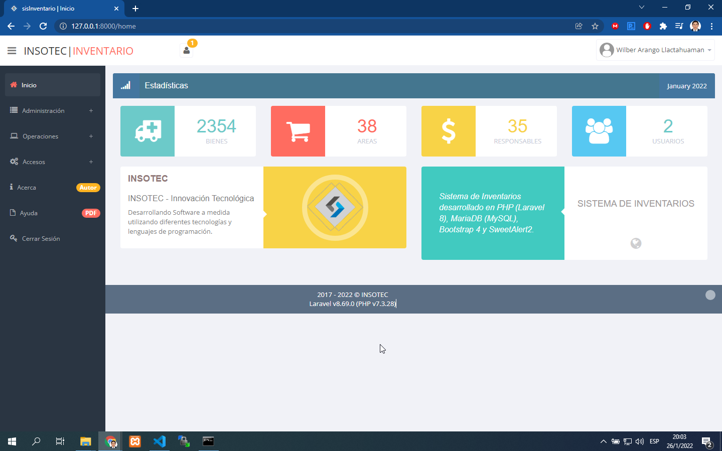 Sistema de Inventario desarrollo en Laravel 8 y Mysql